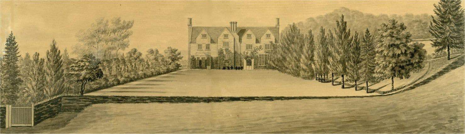 When the Pontrilas estate was sold in 1839, the sale particulars described Pontrilas Court’s grounds as simply ‘gardens and fishponds’ occupying, with the house, almost four acres of land. The 19th-century drawing of Pontrilas Court illustrated below shows the garden at the rear of the house with extensive tree planting on either side of the lawn.